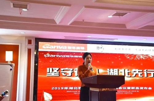 会议上由东道主李三艳上台致感谢辞,她表示2018年整体经济下滑、行业不景气的情况下,冠华照明在湖北发展稳步前进,销量增长超过100%,实现了逆势增长,离不开全体经销商的辛勤付出和公司的鼎力支持。