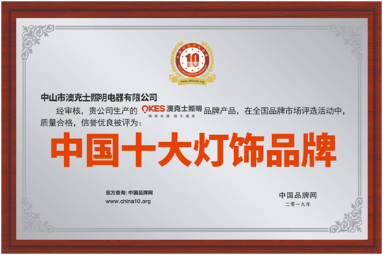 中国品牌崛起 澳克士照明蝉联“中国十大灯饰品牌”