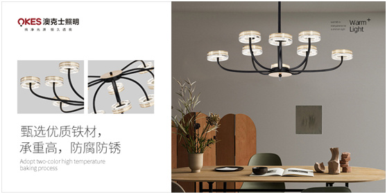 无论是细节处理还是整体呈现的外观效果,澳克士餐吊灯都继承了现代简约风格追求自然别致的艺术智慧,铁艺与玻璃无缝嵌合,增添了几分质朴自然。简约线条,跳跃弧度,时尚美观,其能轻松融入各种场所,简约迷人透露着低调沉稳,轻奢完美展现餐厅格调,点亮小空间的温馨感,让食物更添美味。白墙映衬下,温暖光色活泼生动,柔和光线均匀闪射,绝不忽略餐桌的每一处。