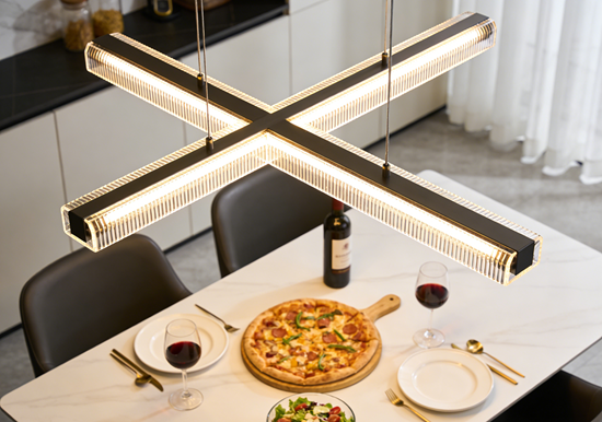 如果你的餐桌是长条形,或者你偏爱现代极简风格,一字型长条吊灯是绝佳选择。