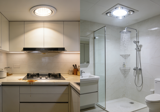 一、为什么防潮防油是厨房卫生间灯饰的命脉?