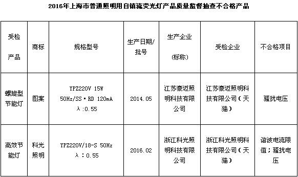 上海市质监局公布抽查结果:2批次节能灯骚扰电压项目不合格