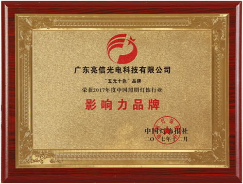 2017,“五光十色照明”品牌星光熠熠。这一年中,五光十色不仅取得众多傲人成绩,还为灯饰照明行业做出了杰出的贡献。五光十色照明在发展中不断探索新颖的发展模式,有质有量地推出新品,并在企业运营中积极调整组织框架,求新求变,不断突围,在岁末时光获得的2017年度中国照明灯饰行业“影响力品牌”的殊荣也是实至名归。如果说之前所获的“中国十大灯饰品牌”、“中国十大照明品牌”、“中国著名灯饰照明品牌”等荣誉称号是五光十色品牌茁壮发展中的每一个耀眼的印记,那么年末“影响力品牌”荣誉的加冕则是2018更好的起点。