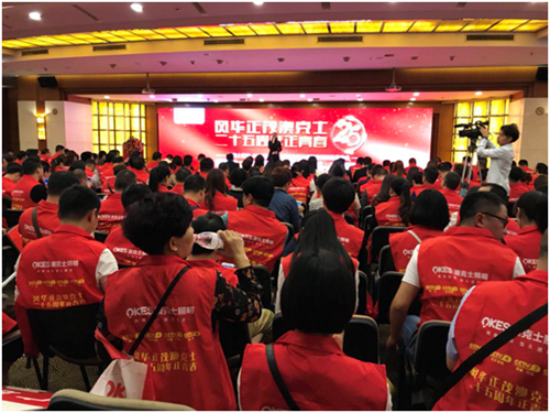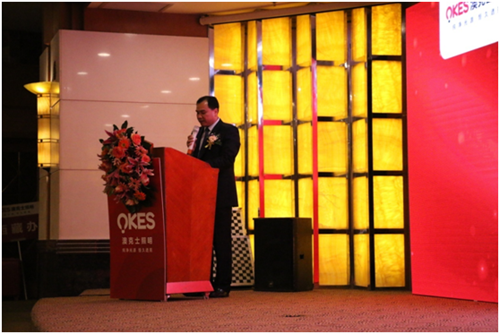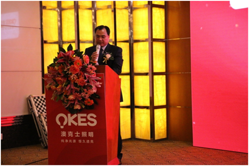 在现场嘉宾的瞩目下,澳克士照明总经理潘振华先生从座位上起身,有条不紊地整理衣装,迈着坚定的步伐走上台前,并十分绅士地往台下鞠了一躬。磁性的声音在会场响起,潘总先对今天莅临现场的嘉宾和澳克士照明的经销商家人们表示热烈的欢迎与诚挚的感谢!感谢大家在过去的一年中,对澳克士照明的厚爱与支持;也感谢大家的汗水与努力,让澳克士照明度过了辉煌灿烂的2017年!