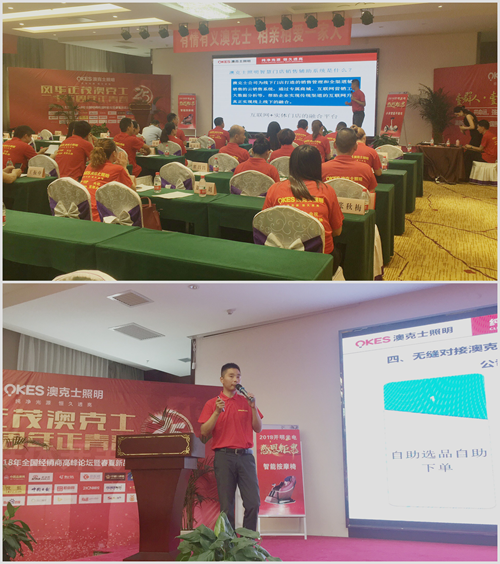 会议进行到了白热化阶段,澳克士照明西北大区经理赵长青先生在现场嘉宾的目光追随中上台发表关于“澳克士销售系统”的专题演讲。赵总的演讲可谓是“干货满满”,让现场嘉宾纷纷拿出纸笔或手机认真记录下来,势要在未来的终端门店运营中巧妙地把知识转化为具体实践,助力销售事业的发展。而我们也有充分理由相信通过销售辅助系统的投入与落地,必将让经销商终端门店焕发出新的活力。