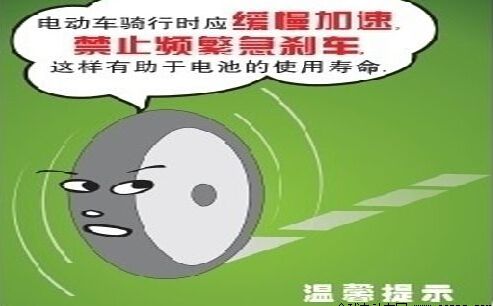 三、正常骑行经常检查前后车胎气压应充足。电动自行车尽量不要使用零起动(即原地起动),尤其是在负重和上坡处更应禁止。起动时,应先用人力骑行,当达到一定的速度时再转为电动行驶,或直接使用电助动行驶。这是因为起动时,电机必须首先克服静摩擦力,此时电流较大,接近甚至达到阻转电流,使蓄电池大电流工作,加速蓄电池的损坏。尽量减少频繁刹车与重新加速次数,不要超载和超速行驶(故意拔掉限速装置)。骑行中还要尽量避免过大颠簸振动而造成对控制器、接点、接插件、电机轴承的冲击。