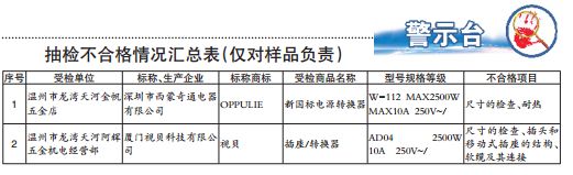 为进一步强化流通领域商品质量监管,切实保护消费者合法权益,市市场监管局开展流通领域开关插座质量专项抽查检验。本次抽检地区为开发区,共抽样检查2家单位经销的10批次开关插座。