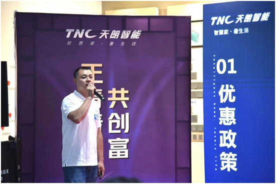 会上,天朗智能还邀请了优秀客户代表李总作分享。据了解,天朗智能还推出一系列活动帮扶、关系引流的新品政策,意在推动各大终端门店的进化升级,提高经销商的利润空间。