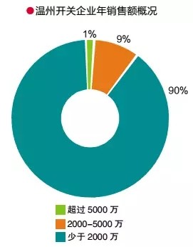 早在改革开放之初,温州人于龙湾区庄泉一带建立了中国最早的电工集群,一度占全国70%左右的电工份额,如今,温州共有2000多家电工企业,其中品牌企业200家,占10%左右,销售额过5千万的企业不过10家,多是一些四线企业,专注于OEM或外贸,目前比较有知名度的是人民电工开关以及飞雕开关。
