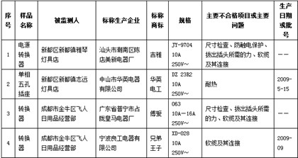 从不合格名单中看到,标称中山市华英电器有限公司生产的“华英电工”单相五孔插座耐热项目不合格。标称宁波良工电器有限公司生产的“兄弟王子”转换器软缆及其连接项目不合格。标称宁波海牛电器有限公司生产的“海牛”转换器耐热、绝缘材料的耐非正常热和耐燃项目不合格。标称温州中本电器有限公司生产的“中本电器”双联双控开关耐热、绝缘材料的耐非正常热和耐燃项目不合格。