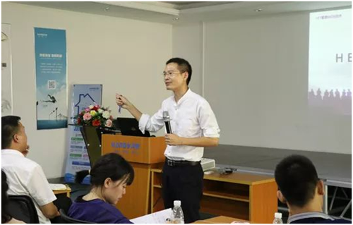 参观完厂区后,便由汉的电气董事长杜汉民先生向各参会人员讲述汉的电气的发展历程并为大家分享了公司在发展过程中是如何建立信念系统、企业管理、产品定位、团队管理四个方面的经验,得到了大家高度认可。