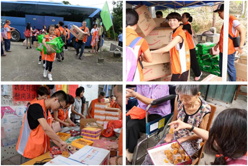 当天一早,在汉的电气总经理杜汉红的带领下,汉的电气代表团带着准备好的献爱心中秋礼物来到江门市五邑义工联合会与义工们集合,齐心协力把物资搬上车后,40多名义工坐上大巴,浩浩荡荡地开往开平玲珑村。