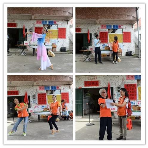 接下来,义工们有的跟老人亲切交流、慰问关心,有的上台为老人表演节目:舞蹈、小品、经典粤曲等等,节目十分丰富,老人们一边吃着水果月饼,一边欣赏节目,大都露出了开心满足的笑容。整个村里都充满了欢声笑语!