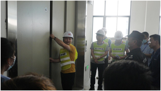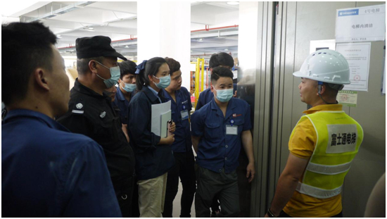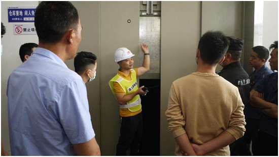 授课后,徐世雄带领库博集团维护部门一行培训学员,依据培训知识对园区内的客梯、货梯进行实地操作练习。