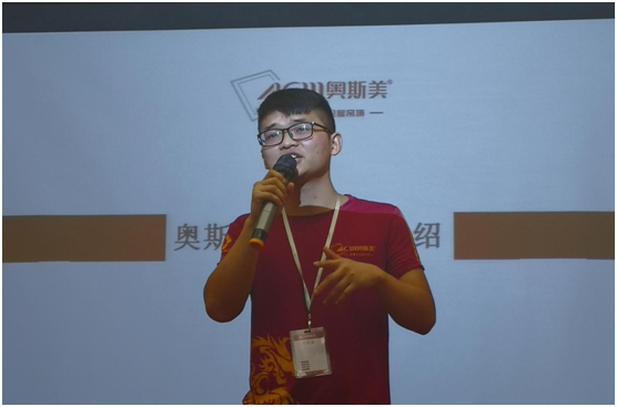 经销商家人们把掌声与欢呼声送给陈总,又迎接了担任冠军团队业务经理、拥有“个人业绩总冠军”荣誉的刘衍新先生。他为家人们详细讲解“奥斯美产品体系”,并针对“蜂窝板、大板” 两大新品作特别介绍。