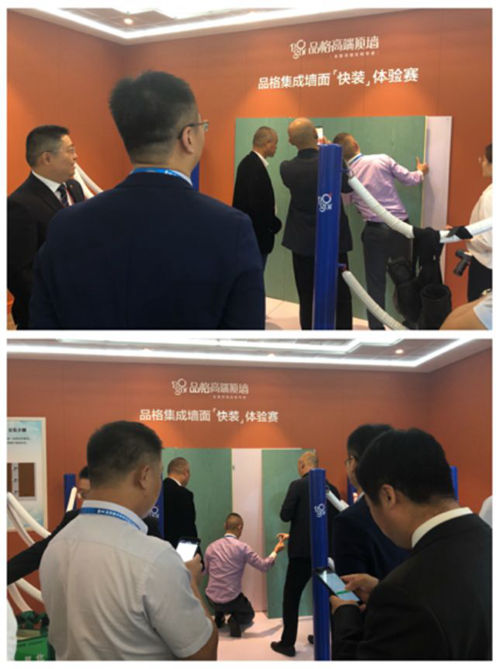 品格高端顶墙净味展馆亮相,净味墙板成健康、环保代名词。在浙江品格家居副总经理卢斌峰先生的陪同下,居然之家的诸位领导对品格的第五代终端门店梦享展厅、对品格的顶墙产品尤其是最新上市的墙面产品表现出浓厚的兴趣和极大的关注。现场居然之家的诸位领导亲自体验我们的墙面快装活动,并对品格墙板的方便、快捷、净味赞不绝口。