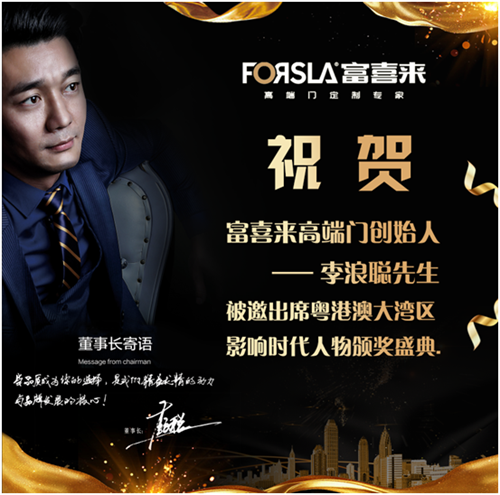 祝贺:富喜来高端门创始人——李浪聪先生,受邀出席粤港澳大湾区“影响时代人物”颁奖盛典!