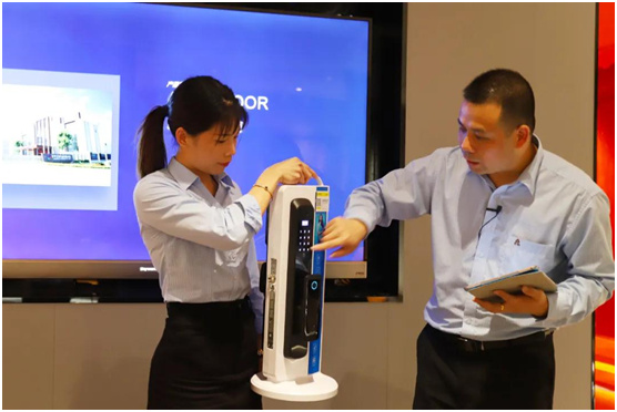 现场讲解了装甲门断桥工艺,性能强大,隔音隔热。岩板装甲门新品采用100%意大利原装进口岩板,相对国产岩板,莫氏硬度更高,寿命更长达20年以上。精雕装甲门表面处理采用奥地利老虎品牌塑粉,寿命更长;配合断桥工艺、艺和自主研发六维可调暗铰、汽车级密封胶条,更大提升密封度,更好地优化承重力。无论是款式还是工艺上,艺和带领着合作伙伴走在入户门最前端。