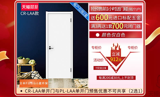 提前啦!提前啦!今年“双11”提前啦!网红主播都已经开设“双11”小课堂了,各个品牌也都已经坐不住了,想要选购木门的小伙伴们也要抓紧拿出小本本记好了,今年这波福利错过可就亏大了,天猫【骊住家居旗舰店】双11抢购攻略第一波预售内容我已经整理好了,小伙伴们“快来抄作业吧”。