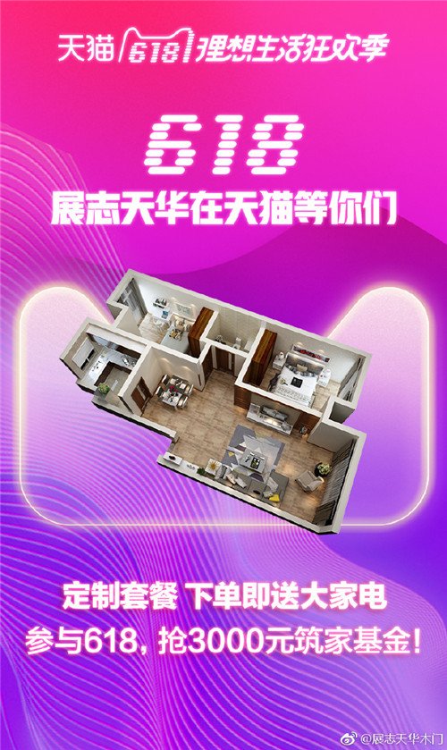 展志天华:2017年的年中大促,展志天华没有在电商平台孤军奋战,而是与全国1100多个门店一起联动,并最终在当年6月份的天猫美家门窗销量排行榜中位列第八名。对于今年的年中大促,展志天华也是有备而来,“定制套餐、下单送大家电、99抵300、抢3000元筑家基金”等优惠将让整体的消费体验大幅升级。