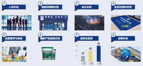 青龙公司综合考虑代理商的实际情况,在家装行业内率先实施了零加盟,为代理商量身定作“3+2”等招商政策,使代理商朋友既不会形成资金积压,又能顺畅扩大销售。并且在店面装修、广告投入、活动推广等需要资金投入的方面都会有相应的费用支持,帮助客户减少资金投入,增加创收。加盟青龙已成为代理商们投资家装防水补漏的明智选择!