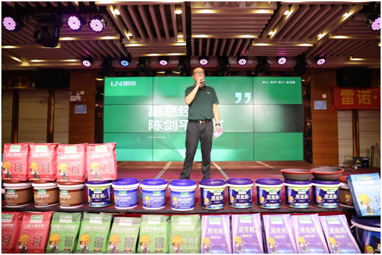 面对未来的市场,雷诺将继续保持高品质、高质量的服务,以用户为核心,以市场为主导,为合作伙伴和客户做好保障,创造雷诺瓷砖胶的下一个辉煌!为使肇庆区域的意向合作伙伴对“雷诺瓷砖胶”品牌有更深刻的了解,并将“雷诺瓷砖胶”品牌的推广大计传递给现场的每一位来宾,雷诺副总经理陈剑平先生为在座各位解析了当下建材辅料市场的发展前景,剖析了当前终端销售面临的困境。陈总指出,在营销方式层出不穷的今天,终端营销也要“转型升级”,要紧随时代潮流。为此,雷诺通过打造全方位运营帮扶体系,多角度赋能终端门店,助力加盟伙伴,让加盟伙伴在未来的行业市场中站稳脚。