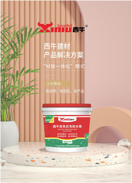 为顺应消费转型时代、积极响应国家节能减排政策,西牛防水以客户需求为导向,以匠心品质铸就高质量产品,全面拥抱新技术、新渠道、新模式、新业态,完善了一站式全屋防水解决方案,从建筑的多应用场景出发,产品囊括厨卫防水、屋面防水、瓷砖胶、美缝剂、护墙宝等,致力于让“家装无忧,就选西牛”的企业理念落实到每一位消费者的品质理想家中,满足人们对美好生活的家的向往。
