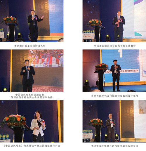 中国建筑防水协会秘书长朱冬青教授,中国建筑防水协会副会长、深圳市防水行业协会会长瞿培华教授,中国硅酸盐学会房建材分会防水保温专业委员会主任、苏州市防水保温行业协会会长沈春林教授,《中国建筑防水》杂志社社长兼总编辑徐建月编审,香港混凝土维修及防水协会会长陈宝超、副会长蔡允治,澳门混凝土检测维修及防水工程协会会长王宗胜等领导、嘉宾,青龙防水代理商、经销商等合作伙伴,媒体代表以及青龙防水董事长宋敦清、营销总监贺金龙、生产研发总监张科等高管共500多人出席活动。