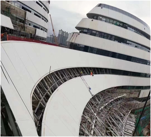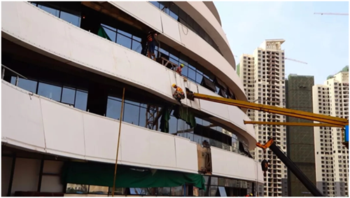 青龙公司作为国内GRC领域的知名企业,承接了新媒体中心三座主体结构的双曲面外墙板项目。青龙GRC团队克服重重困难,从图纸深化设计、彩色GRC选材、造型产品生产到安装施工等一系列工序中都做到极致,让甲方和监理都非常满意。