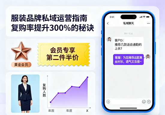 服装行业的竞争已从"流量争夺"转向"用户经营"。私域运营不是简单的"建群发广告",而是一场以用户为中心的经营革命。通过构建高粘性社群、升级内容营销、重构会员体系、建立数据闭环,服装品牌能够实现复购率300%的飞跃。