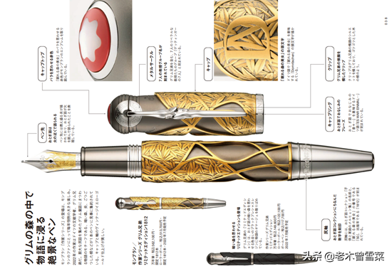 万宝龙2022年大文豪纪念了德国著名童话作者,格林兄弟。他们的童话故事洋溢着黑暗的深林、篝火、崎岖的山路,这些故事元素都被做在了高配笔款的笔杆上,复古黄色装饰是高配大文豪的主色调。