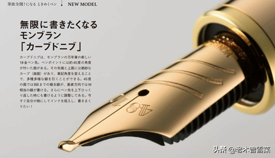 【弯曲笔尖】这是万宝龙书法系列的全新产品,材质为18K金,笔头处做了45度角,笔尖粗细可以在万宝龙M尖到BB尖之间变化,书写变化能力相当强。