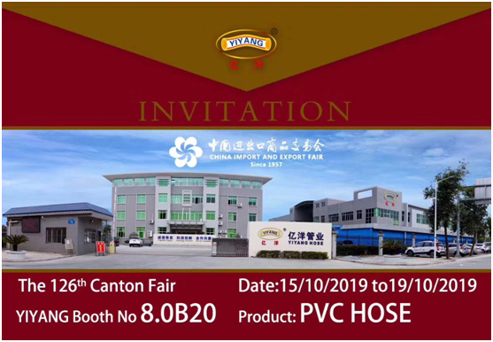 2019年10月15日,第126届秋季广交会在琶洲国际会展中心拉开帷幕。本届广交会参展企业达2.5万余家,将有超过210个国家和地区的采购商与会洽谈采购。其中,深耕PVC软管行业多年的“亿洋管业”主动参与其中,向世界友人展示中国品牌的实力与魅力。