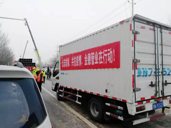 1月29日17点30分,金德管业第一批援建物资的车队顺利到达郑州“小汤山”医院项目现场。