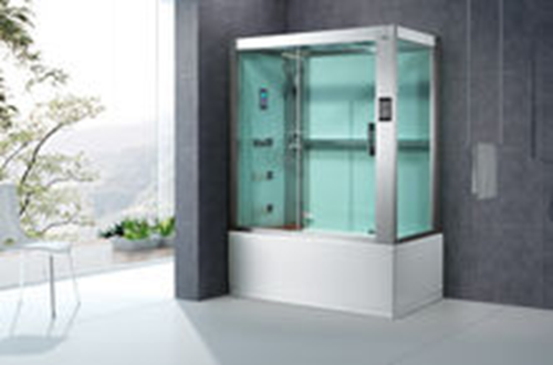 优点:淋浴和蒸汽桑拿在同一房体内,占地面积小。