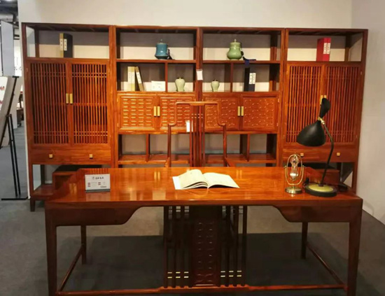 “我们这次带来两个系列的家具,一个是缅甸花梨的新中式家具,满足现代社会年轻人喜爱的;另外一个是紫檀系列,比较古典的家具……”在福建省鲁艺家居有限公司展区,公司副总经理郭伟东正在向两位来自浙江省杭州市的采购商介绍红木家具。