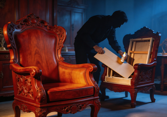2. 敲听声: 红木密度大,敲击声清脆沉闷;杂木声音发飘。用指关节敲击柜门侧板,声音不对立刻警觉。