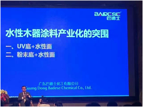 巴德士集团方学平董事长作《水性木器涂料产业化的突围》主题演讲。