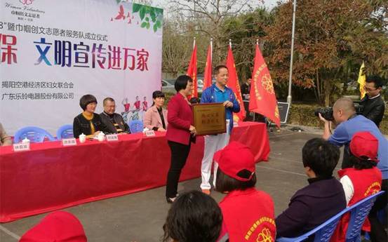 活动中各创文志愿者进行了宣誓仪式,承诺尽己所能帮助他人,践行志愿者精神,传播宣传文明行为,共建和谐文明社会贡献力量。此后,区妇联洪奕娜主席与广东乐铃电器股份有限公司董事长、潮州市饶平县政协委员陈明俊先生进行互赠牌匾。