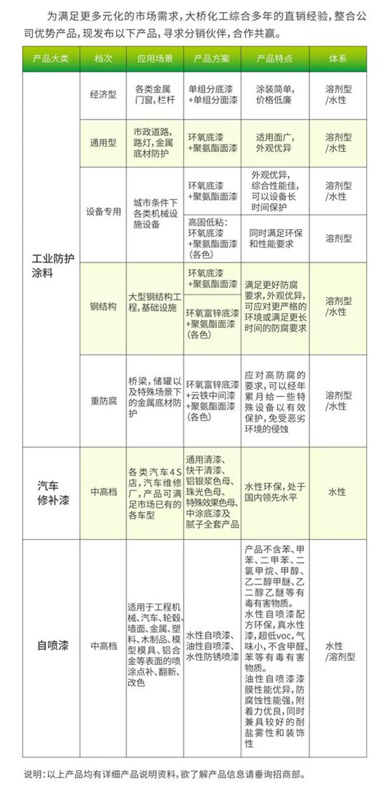 中山大桥化工现综合多年的直销经验,整合公司工业漆优质产品,面向全国启动招商,诚邀您的加盟!