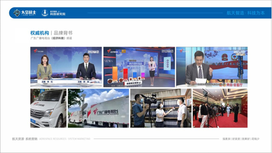 在终端营销环节,为达成低成本落地目标,充分借助航天研究院的权威证书授权,并搭配电视台签约相框、航天视觉吊旗以及航天超级灯箱广告等宣传物料,构建起强大的宣传攻势,进而以低成本落地的方式提升品牌在终端市场的竞争力。
