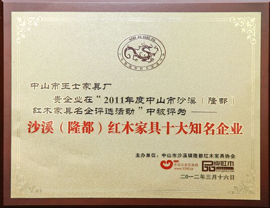 中国红木家具品牌王士丰红木一路走来,可谓风雨兼程,它积极乐观面对困难,不断调整企业定位,坚实向前,一步一个脚印。王士丰红木“踏实、进取”的精神始终鼓舞着企业中的每一位成员,促使企业迅猛发展并赢得多项殊荣。2011年,王士丰红木的一套大型红酸枝精雕家具《盛世年华》在中山(隆都)家具博览会上获得金奖。