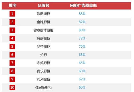 ①网络广告覆盖范围广、展示直观,是部分实力较强的橱柜企业品牌宣传的重要途径;