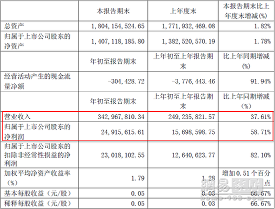 曲美家居集团股份有限公司2017年第一季度报告数据显示,报告期内,曲美家居营业收入3.43亿元,同比增长37.61%;净利润2491.56万元,同比增长58.71%。报告解释,净利润增长主要系同期销售收入增长所致。