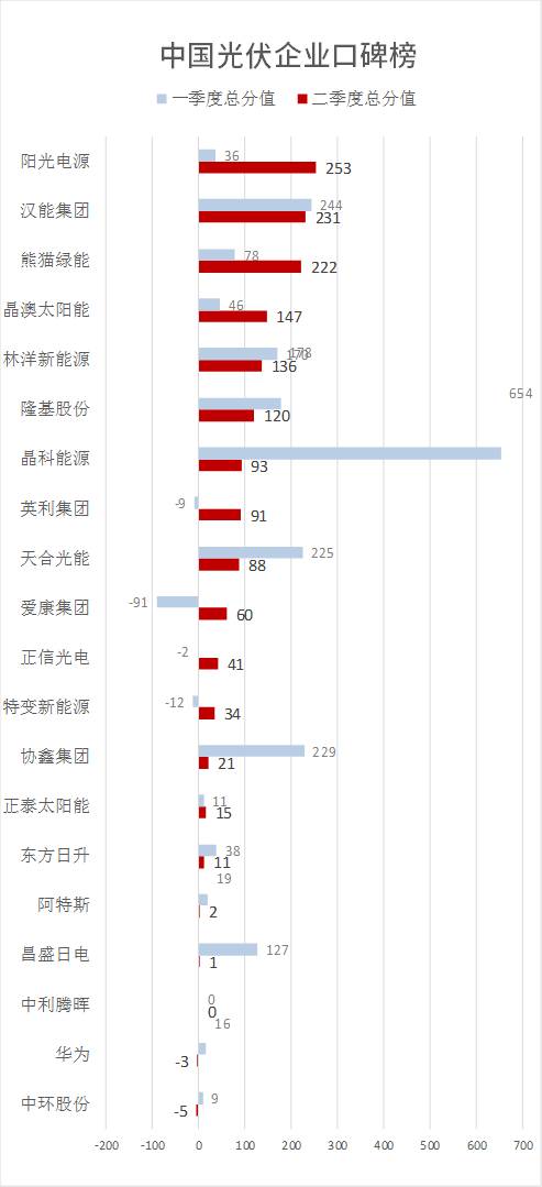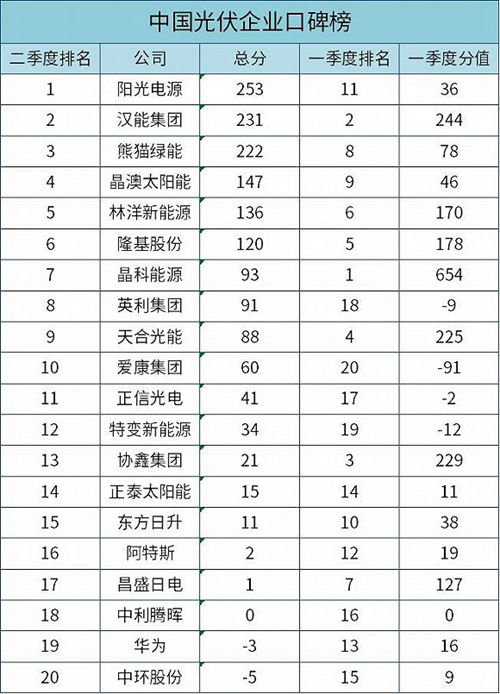 中国光伏企业口碑榜二季度榜单