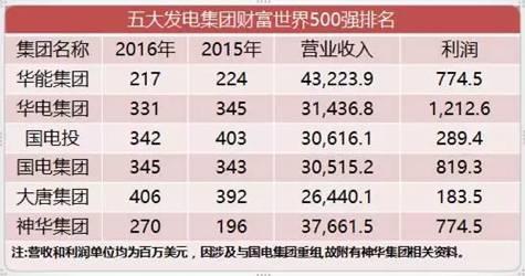 发电领域的央企素有“五大四小”之说,华能集团位列五大之首。截至2016年底,公司总资产达到10028亿元,在境内外拥有全资及控股电厂装机容量16554万千瓦。销售收入2461亿元,利润总额139亿元。