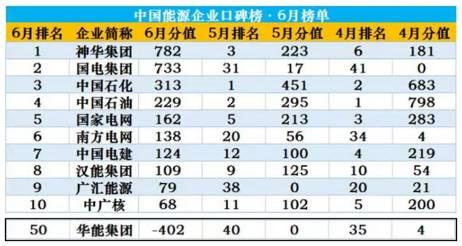 不只是6月,今年以来,华能集团口碑总体表现差强人意,身影经常在50家样本企业的尾部区域浮荡。内部出现的问题,使其口碑雪上加霜。