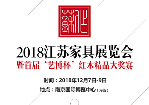 12月7日至9日,2018江苏家具展览会暨首届“艺博杯”红木精品大奖赛(以下简称展览会)将在南京国际博览中心举行。