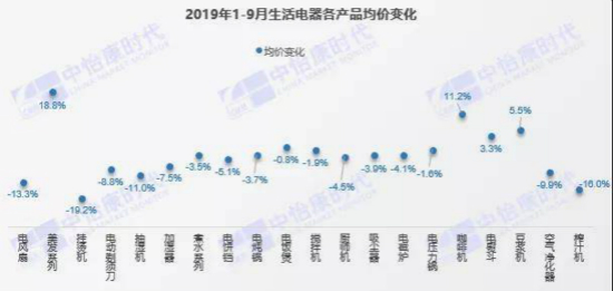 图1:2019年1-9月生活电器各产品均价变化 数据来源:中怡康推总数据