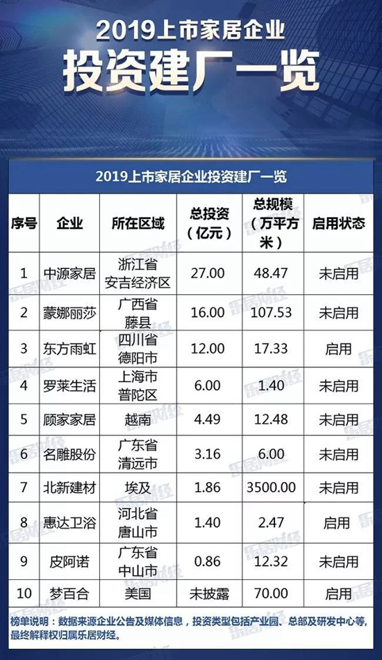 2019接近尾声,梳理出上市家居企业一年来或在海外圈地建厂、或在国内投建产业中心十大事件,透视上市家居企业在2019年“投资建厂/研发中心”投资大事记。